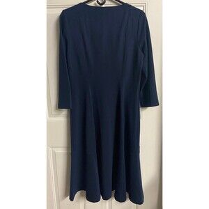 Lands End Midi Dress 10/12 Navy Blue Round Neck Long Sleeve Knit classic
