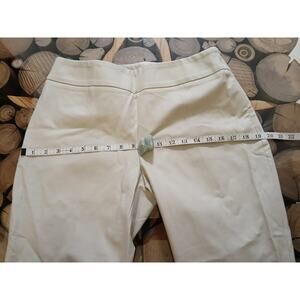 Lands' End Midrise Skinny Leg Pants Zipper Ankle Beige Khaki Petite 10P, in good pre-owned condition: no holes, no stains, minimal wear, has been recently cleaned, may be stale from storage. Marked as a women's 10P, measurements are taken while laying flat and are approximate: (see photos)