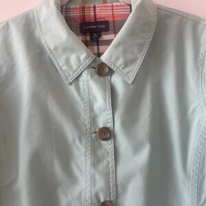 Land's End Mint Green Trench Coat with Front Buttons and Pockets, Size Medium