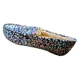 Lands End Moccasin Slipper Rainbow Leopard Nany Metallic Youth Size 7M JJ1796