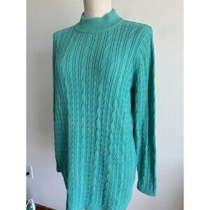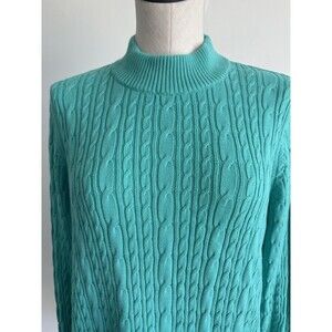 Lands End Mock Neck Cable Knit Sweater Size Medium
