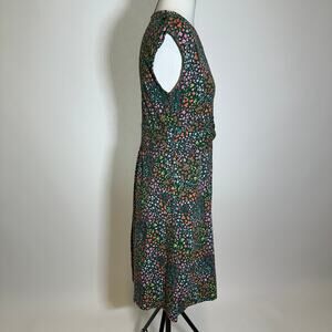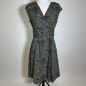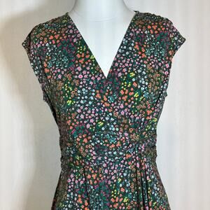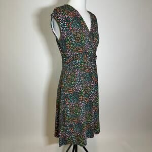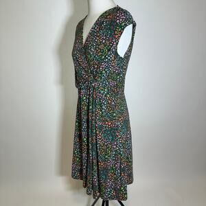 Lands End Multicolor Micro Floral Cap Sleeve Faux Wrap Dress Womens Medium 10-12