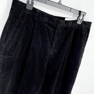 Lands' End NEW Pleated Straight Corduroy Pants Womens Sz 14 Deep Black High Rise