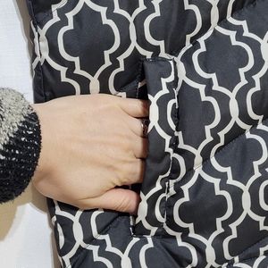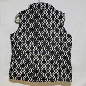 Land's End NWOT Puffer Vest Black and White Zippered Front Collar Pockets -295