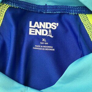Lands' End NWT Blue - Lime Green Rashguard Swim Shirt Top Sz XL
