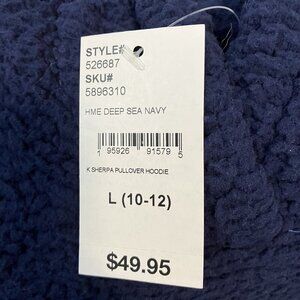 Lands' End NWT Deep Sea Navy Sherpa Pullover Hoodie Size L (10/12)