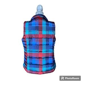Brand New Blue and Red Plaid Puffer Vest. Responsible Down Standard.