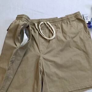 NWT. Khaki Pull on Shorts for Men Size XXL (44-46). Elastic waist with adjustable strap, 2 side pockets, 1 back right side pocket with button for closure. Pictures are part of description.