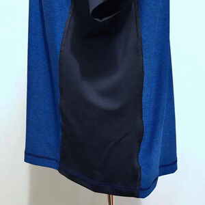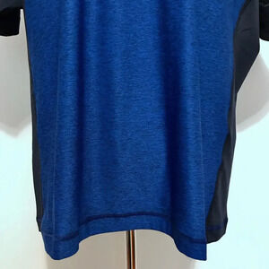 NWT. Mixed Media Swim Tee for Men Various Sizes. Marled blue and dark navy side panels, color is known as "blue space dye", short sleeves, graphic brand logo middle back neckline, as per tag "UPF 50, moisture wicking, stretch". Pictures are part of description.