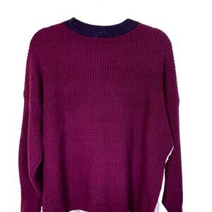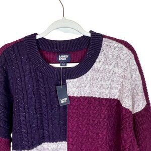 Lands' End NWT Sweater L Purple Wool Blend Cable Knit Pullover Size Large