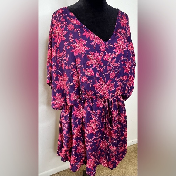 Land’s End NWT tropical floral cinch waist swim beach cover up size large