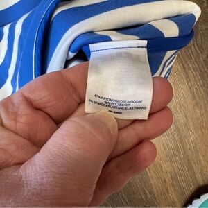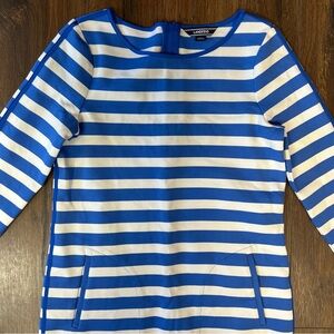 Lands’ End Nautical Stripe PONTE Shift Dress Blue White 3/4 Sleeve SZ 6Tall