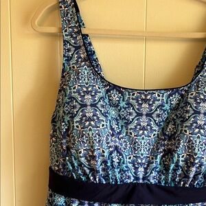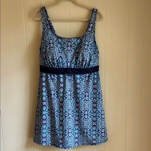 Lands' End Navy & Blue Beach Coastal Vacation Swim Dresskini with Bottoms Sz 18W