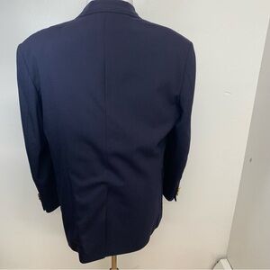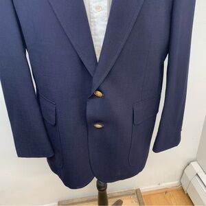 Lands End Navy Blue Gold Button Blazer Jacket Men 43R Wool Sport Coat Made USA