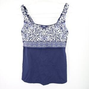Lands End Navy Blue Pattern Swim Tankini Top Underwire Scoop Neck Size 8