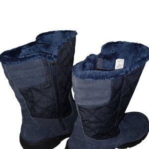 Lands End Navy Blue Puffer Suede Mid-calf Winter Rain Boot Women's Size 9B NWOT
