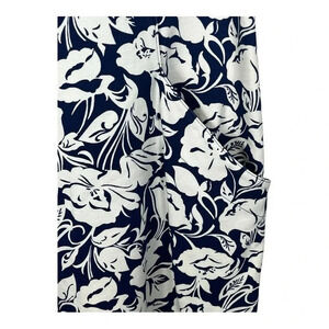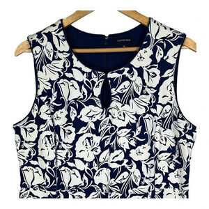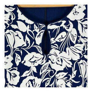 Lands' End Navy Blue and White Floral Shift Dress, keyhole neckline, hidden back zipper with hook closure, 2 open pockets, fully lined, women's plus size 14.