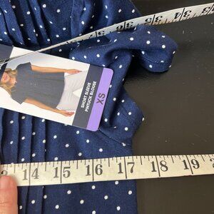 Lands’ End Navy Blue White Polka Dot Pintuck Blouse Classic Casual Preppy XS NWT