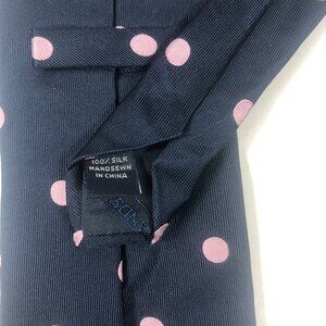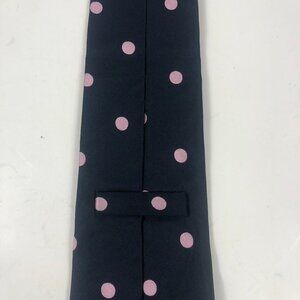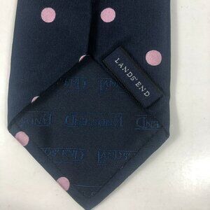 Lands End Navy Blue with Pink Polka Dot Silk Neck Tie Designer Handsewn