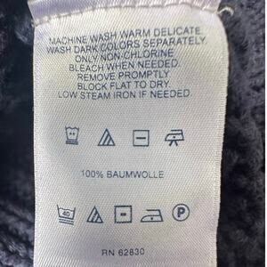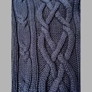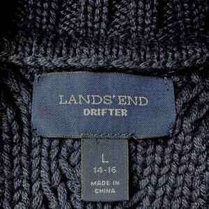 Lands End Navy Large Cable Knit Turtleneck Cotton Fisherman Preppy Sweater