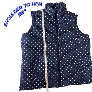 Lands’ End Navy Puffer Vest with White Polka Dots - Stylish & Warm!