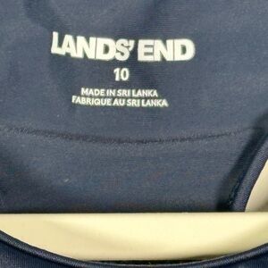 Elegant deep blue hue. Perfect for any occasion. Soft and durable fabric. This is a Lands' End one-piece garment, most likely a swimsuit (bathing suit) or a performance leotard/bodysuit, given the sleek, synthetic fabric and cut.