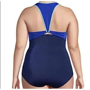 Lands' End Navy Royal Blue One Piece Racerback Modest Swimsuit 14L. .