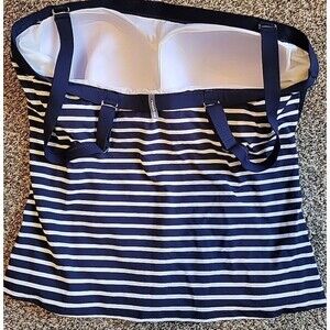 Lands End Navy Swim Top 16 D Stripes Removable Straps Bandeau Front Lined S942