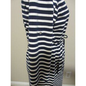 Lands End Navy & White Striped Hooded Drawstring Waist Robe With 3/4 Sleeves