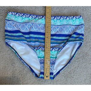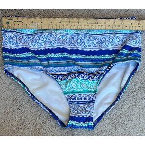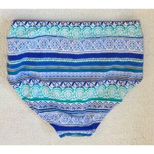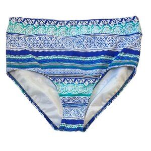 Lands End New Womens High-Waist Bikini Bottom Blue White Green Size 10