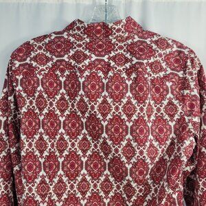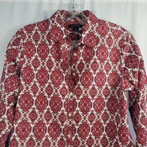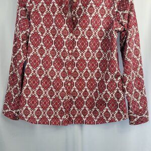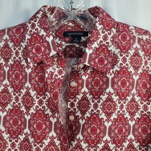 Lands' End No Iron Blouse Size 8 Red & White Paisley Supima Cotton