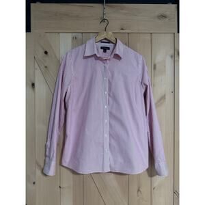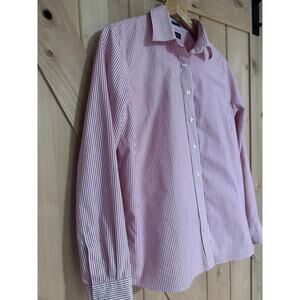 Land's End | No Iron Pintuck Oxford Red White Striped Dress Shirt | Size 14