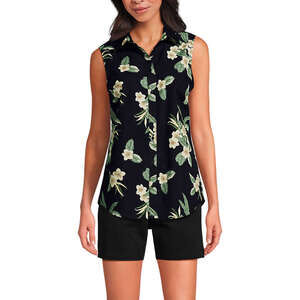 Lands' End No Iron Sleeveless Button-Up Shirt Black Plumeria Women's S/P (6-8)