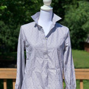 Never worn Lands' End top. Quarter button up. Blue stripes with navy dots. Buttons on the wrists.