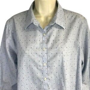 Lands' End No Iron Supima Cotton Shirt Blue Stripe Polka Dot sz 14
