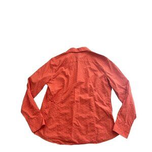 Lands End No Iron Supima Cotton Women's Coral Polka Dot Long Sleeve Button Down Shirt.