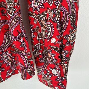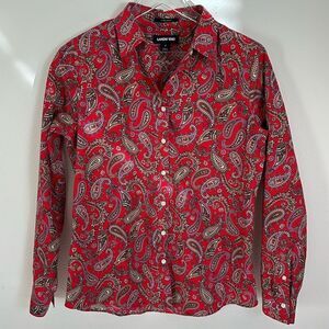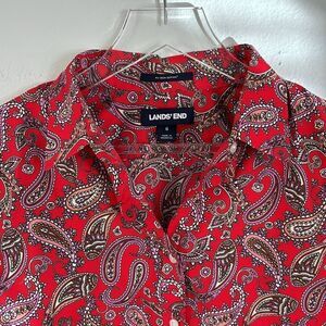 Lands’ End No Iton Supina Button Front Collared Top Shirt Red Paisley Size 6