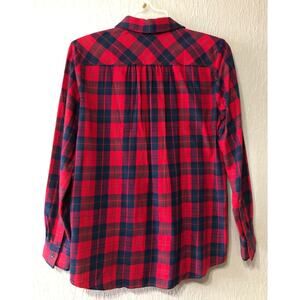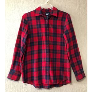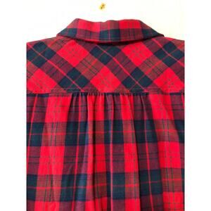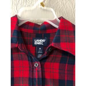 Lands' End Oeko Tex Tartan Plaid Flannel Red Button Up Shirt Cotton 10-12 New