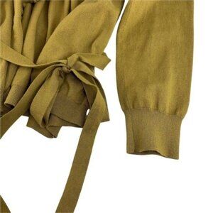 Lands End Olive Green Cardigan Belted Ruffled Trim