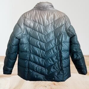 Lands End Ombre Puffer Jacket Sz L Women's .. zipped Pockets .. Great with Jeans .. Navy to Light Gray ..