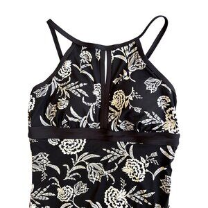 Lands' End One Piece Maillot Black White Floral Size 14 Shelf Bra Adj Straps