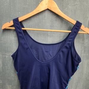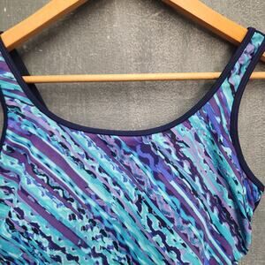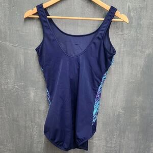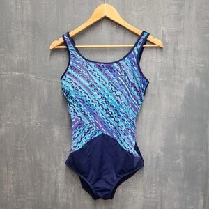 Lands End One Piece Swimsuit 10 Blue Geometric Print Soft Cup Chlorine Resistant