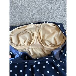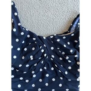 Lands End One Piece Swimsuit 8 Medium Polka Dot Twist Crossback Blue Classic