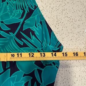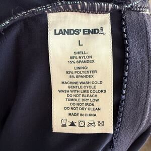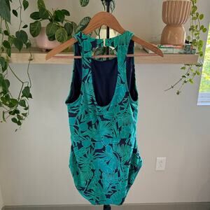 Lands End One Piece Swimsuit L Navy Teal Blue Tropical Racerback Modest Swimwear