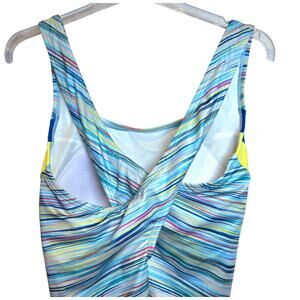 Lands End One Piece Swimsuit X-Back Plus Sz 18 W Colorblock Blue Yellow Modest