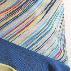 Colorway: Blue Space-Dye Pattern with flattering Cobalt Blue and Pineapple Yellow panels flanking the torso.
