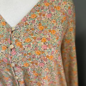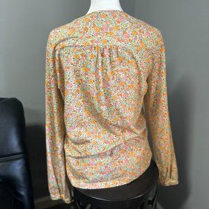 Lands End Orange Floral Long Sleeve Button Down Tencel