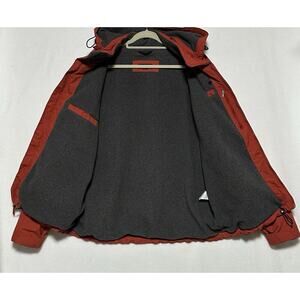 Lands End Orange Jacket Mens Windcheck Hooded Fleece Lined Large 42-44 EUC