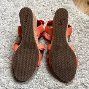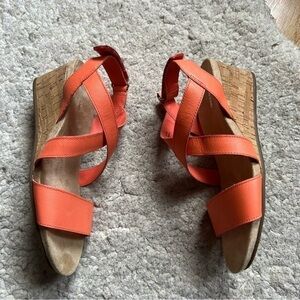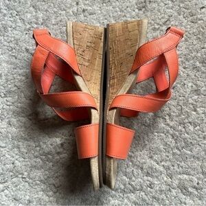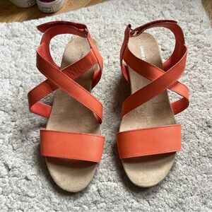 Lands' End Orange Leather Comfort Cork Wedge Sandal Size 9