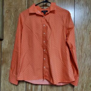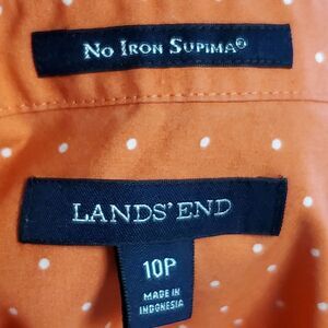 Lands' End Orange Polka Dot Button Down Shirt Size 10P